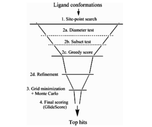 The GLIDE docking "funnel" showing the docking hierarchy: