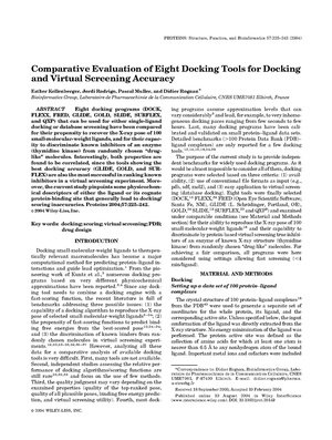 - ↑ Kellenberger, E., Rodrigo, J., Muller, P. and Rognan, D. Comparative Evaluation of Eight Docking Tools for Docking and Virtual Screening Accuracy, 2004. PROTEINS: Structure, Function and Bioinformatics. 57: p. 225-242.